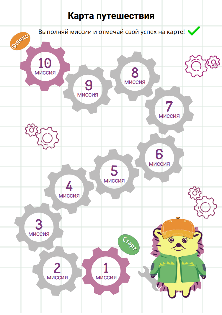 из 10 увлекательных миссий. В каждой миссии ученик знакомится с важными