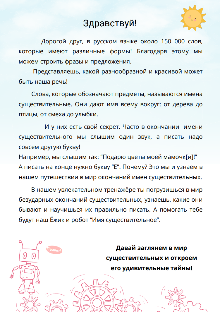 Тренажёр по русскому языку "Безударные окончания существительных" состоит