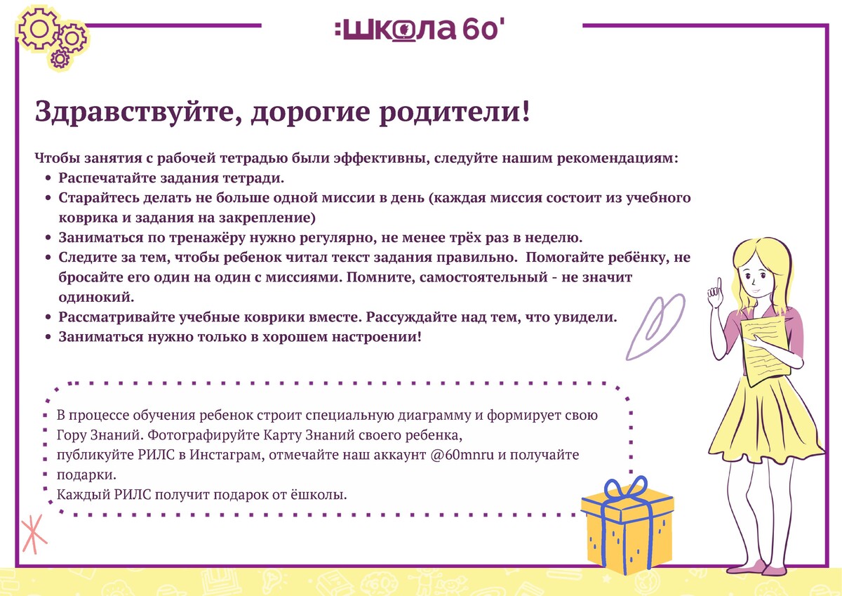 Тетрадь содержит видеоурок, помогатор, 15 миссий, ответы к ним.Тетрадь рассчитана на ежедневные тренировки в течение двух недель.