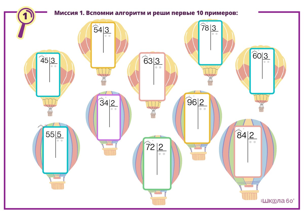 С помощью ярких упражнений школьник отработает тему "Деление в столбик" и научится выполнять письменное деление.
