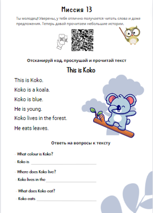 В каждой миссии вы найдёте qr-код, отсканировав который, сможете прослушать, как правильно читать слова в заданиях.