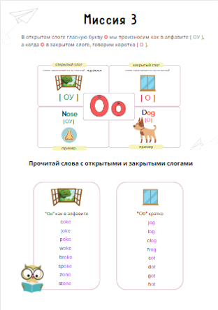 В нашем тренажёре по чтению ученика ждут 19 миссий и интересные задания к ним, которые помогут научиться читать отдельные слова, целые предложения и, конечно, истории.