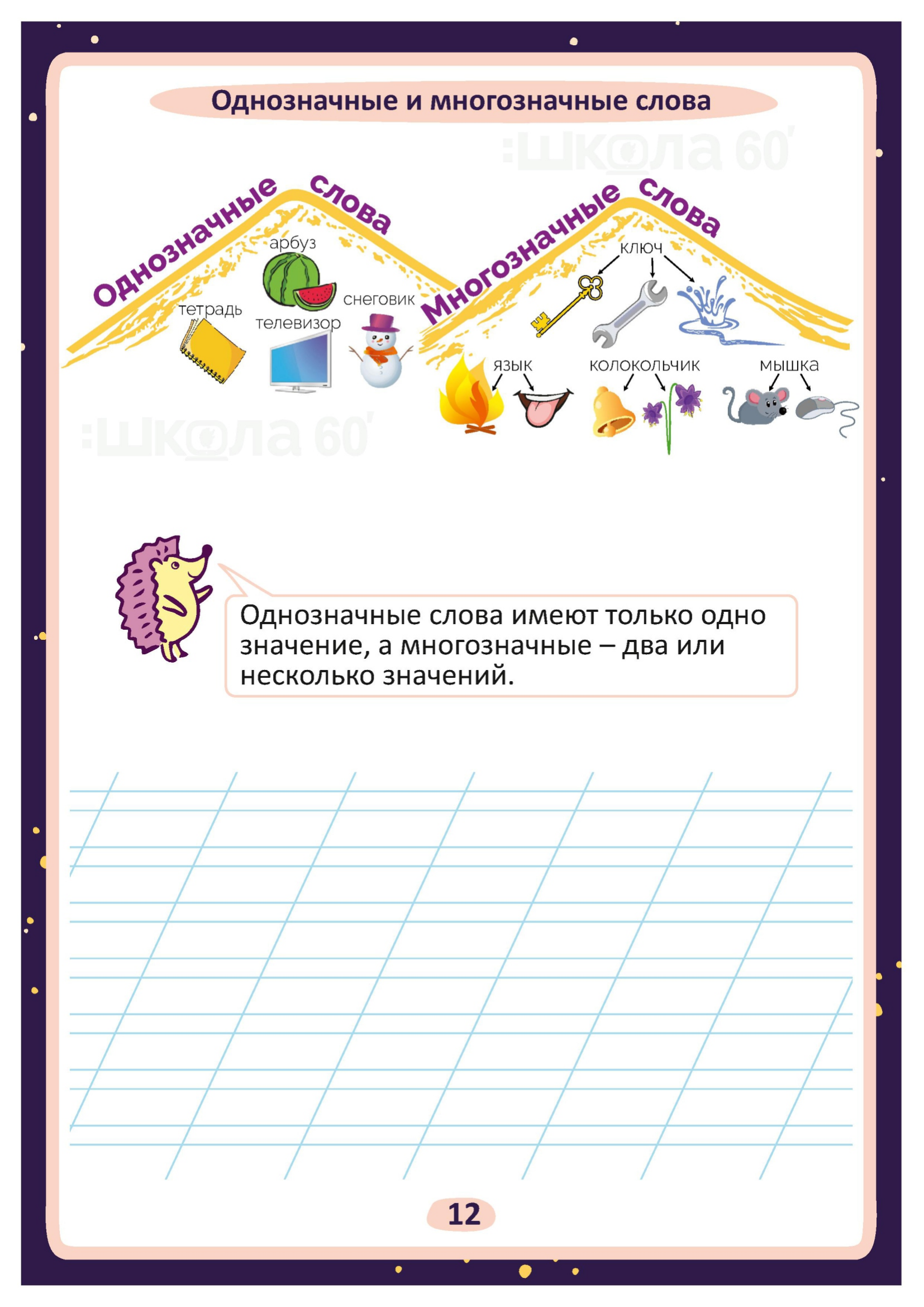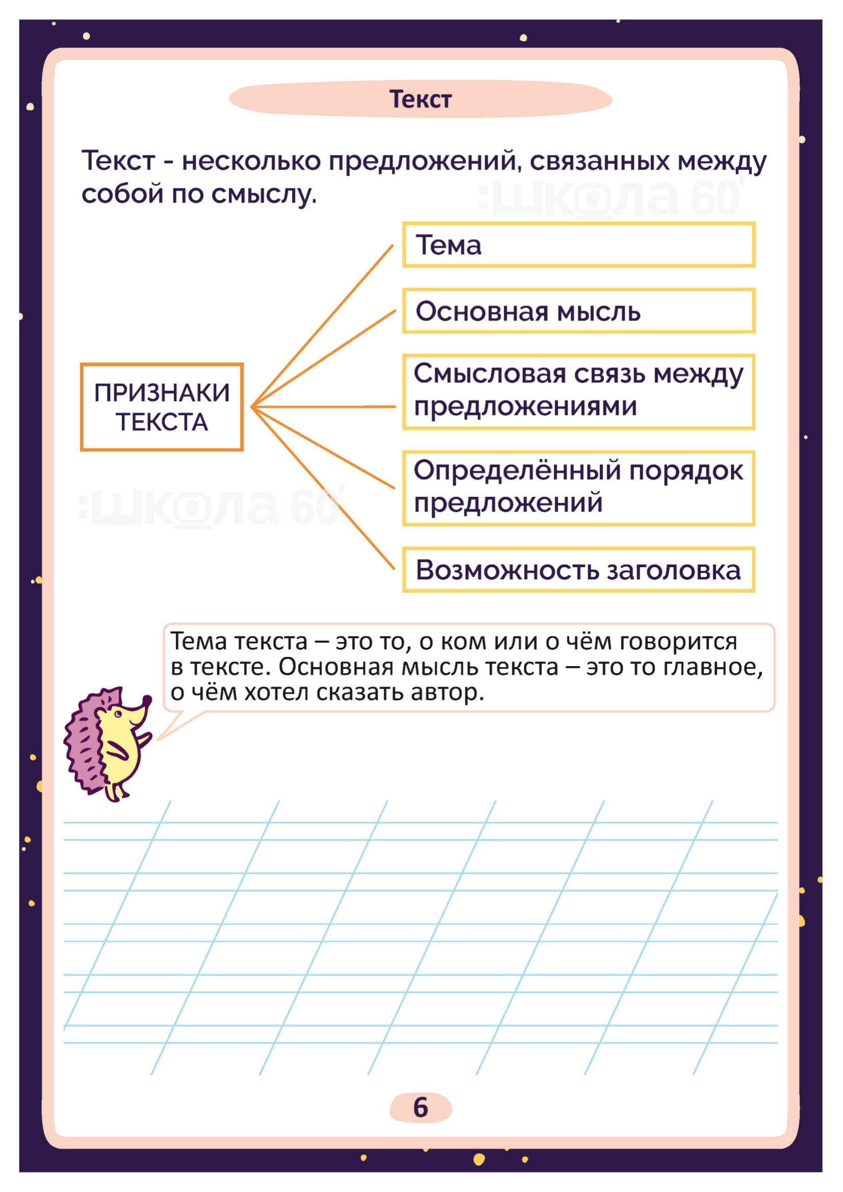 Графические авторские cхемы, которые позволяют наглядно увидеть тему, систематизировать, разобраться в ней, запомнить и конечно, легко повторить в конце четверти перед контрольными или аттестацией. Какие темы входят в помогаторы:2 класс Пиши красиво! Речь Текст Типы текстов Предложения (по цели высказывания) Предложения (по интонации) Главные члены предложения Многозначные слова Прямое и переносное значение слов Йотированные гласные Орфограммы -жи-ши, -чу-щу-, -ча-ща- Перенос слова Заглавная буква Сочетание букв ЧК, ЧН, НЧ, ЩН, НЩ Разделительный -Ь- Парные согласные Безударные гласные Однокоренные слова Слова с удвоенным согласным Орфограммы. Имя существительное Имя существительное. Одушевлённые и неодушевлённые Имя существительное. Собственные и нарицательные Имя существительное. Большая буква Имя существительное. Единственное и множественное число Имя прилагательное Имя прилагательное. Синонимы, антонимы Глагол