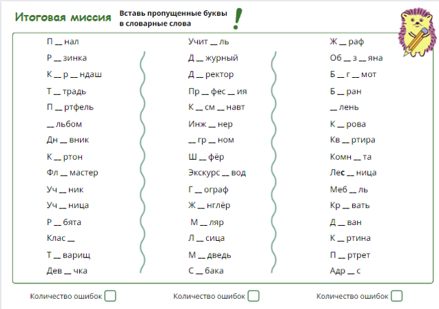 Словарные слова русского языка