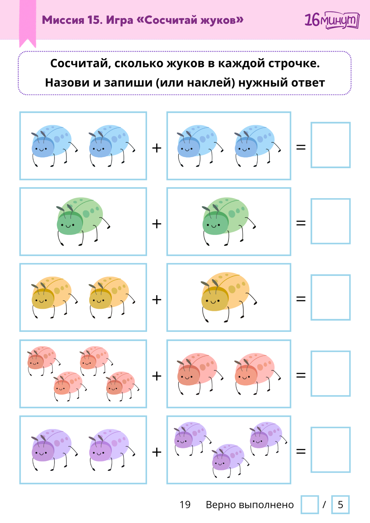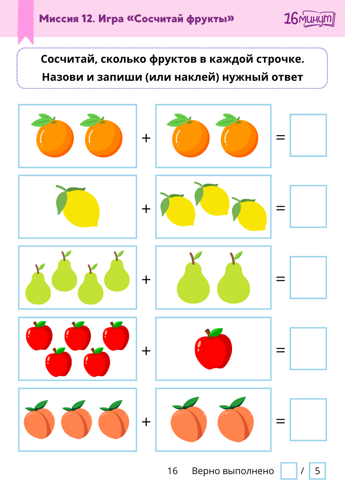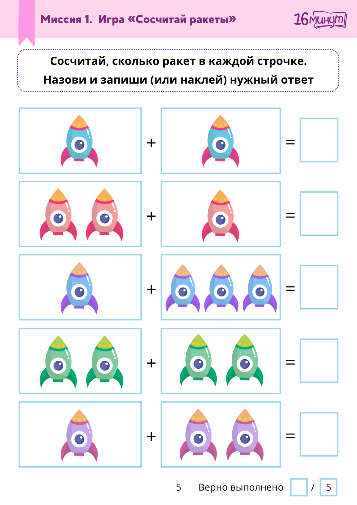 Ребёнок в игровой форме научится считать и складывать предметы в пределах семи. Задания тетради развивают логическое мышление, память и внимание.