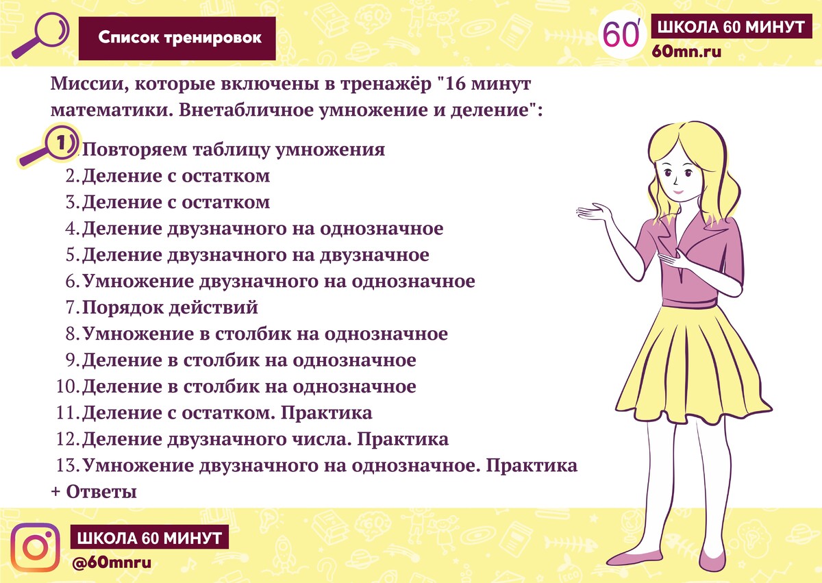 - отработает деление и умножение чисел ВНЕ таблицы (типа 91:13)