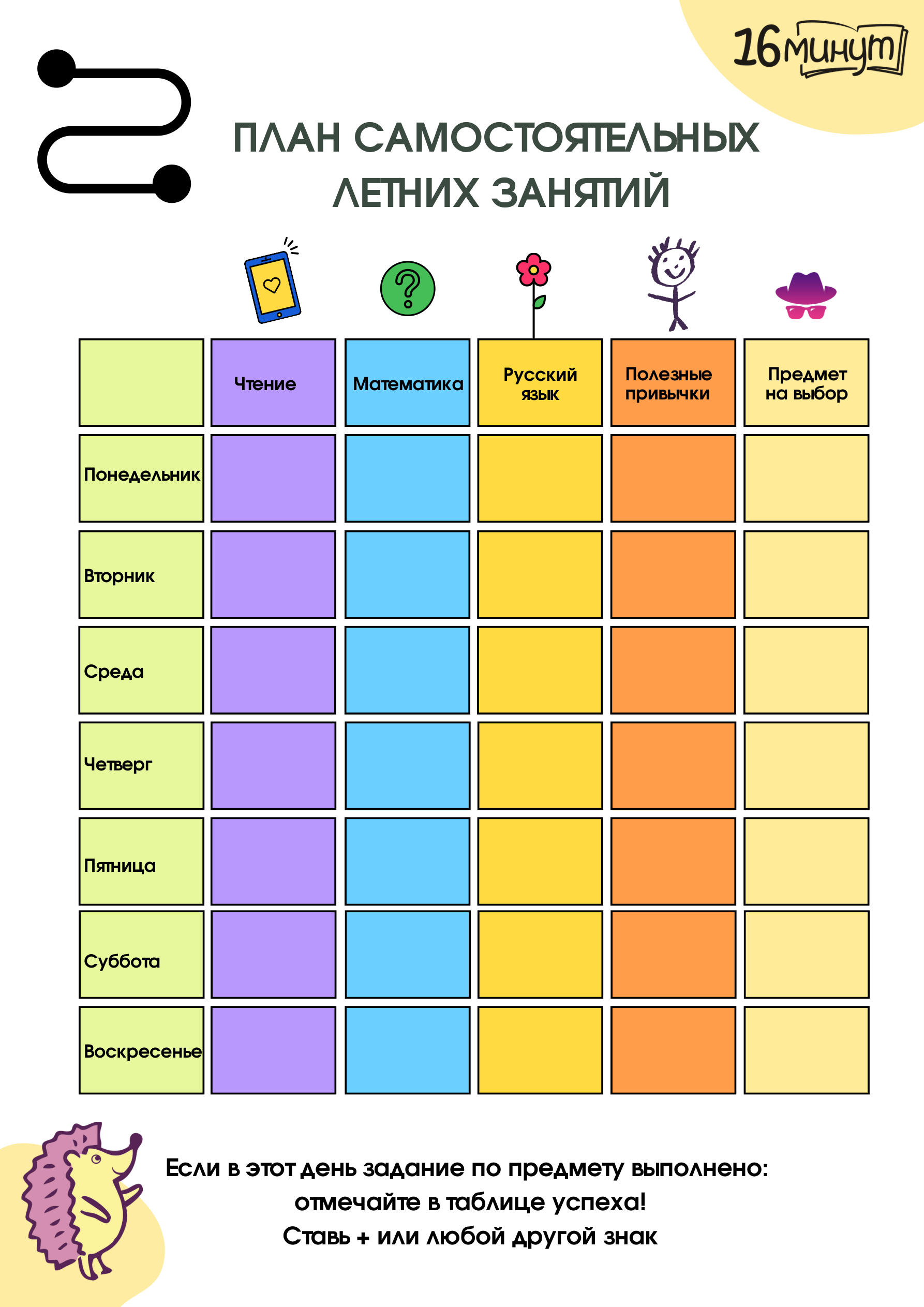 - Отмечайте выполненные задания в графике тренировок — это формирует привычку