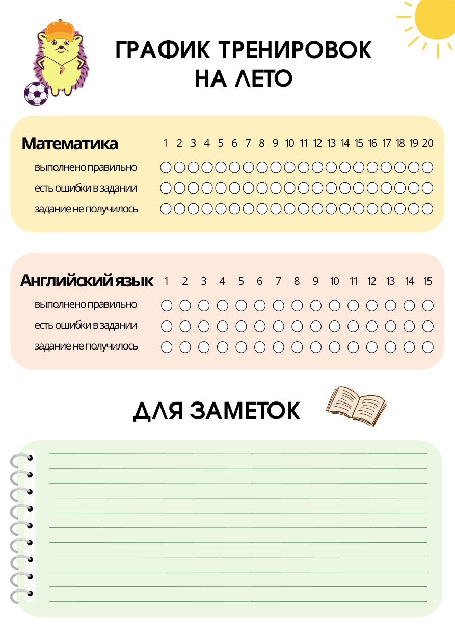 - Отмечайте выполненные задания в графике тренировок — это формирует привычку