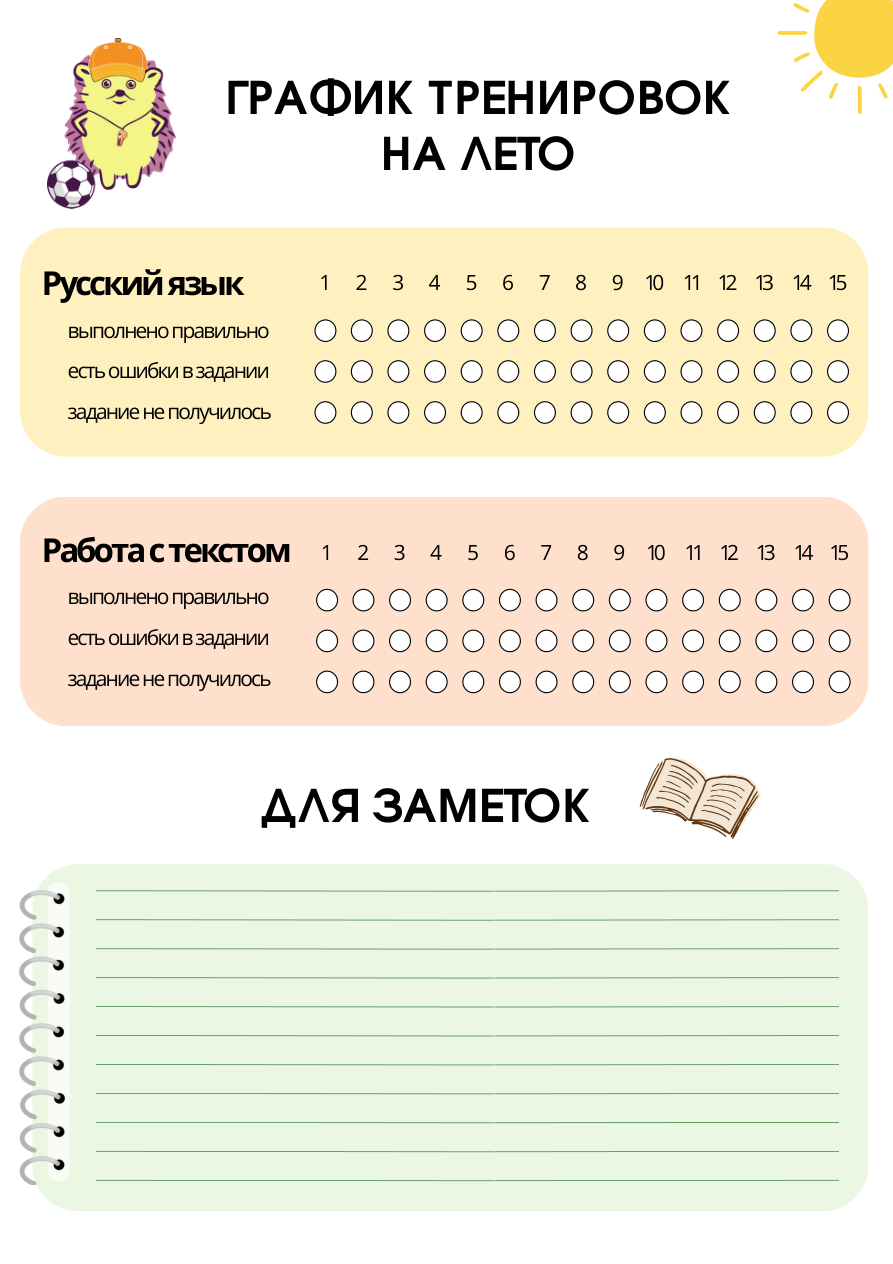 - Отмечайте выполненные задания в графике тренировок — это формирует привычку